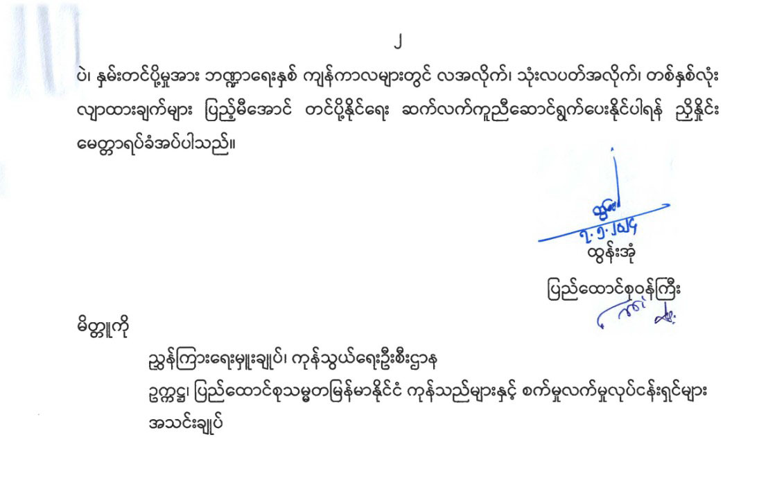 MPBSMA Office May 8, 2024 ပဲမျိုးစုံ ပြည်ပသို့တင်ပို့မည့်လျာထားချက် ပြည့်မီအောင်တင်ပို့ခဲ့ခြင်းအတွက် ကျေးဇူးတင်လွှာ အနောက်သို့ပြန်သွားရန်